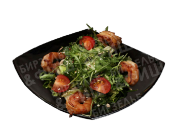 Креветки тигровые, томаты черри, микс салат, сыр пармезан, соус цезарь.